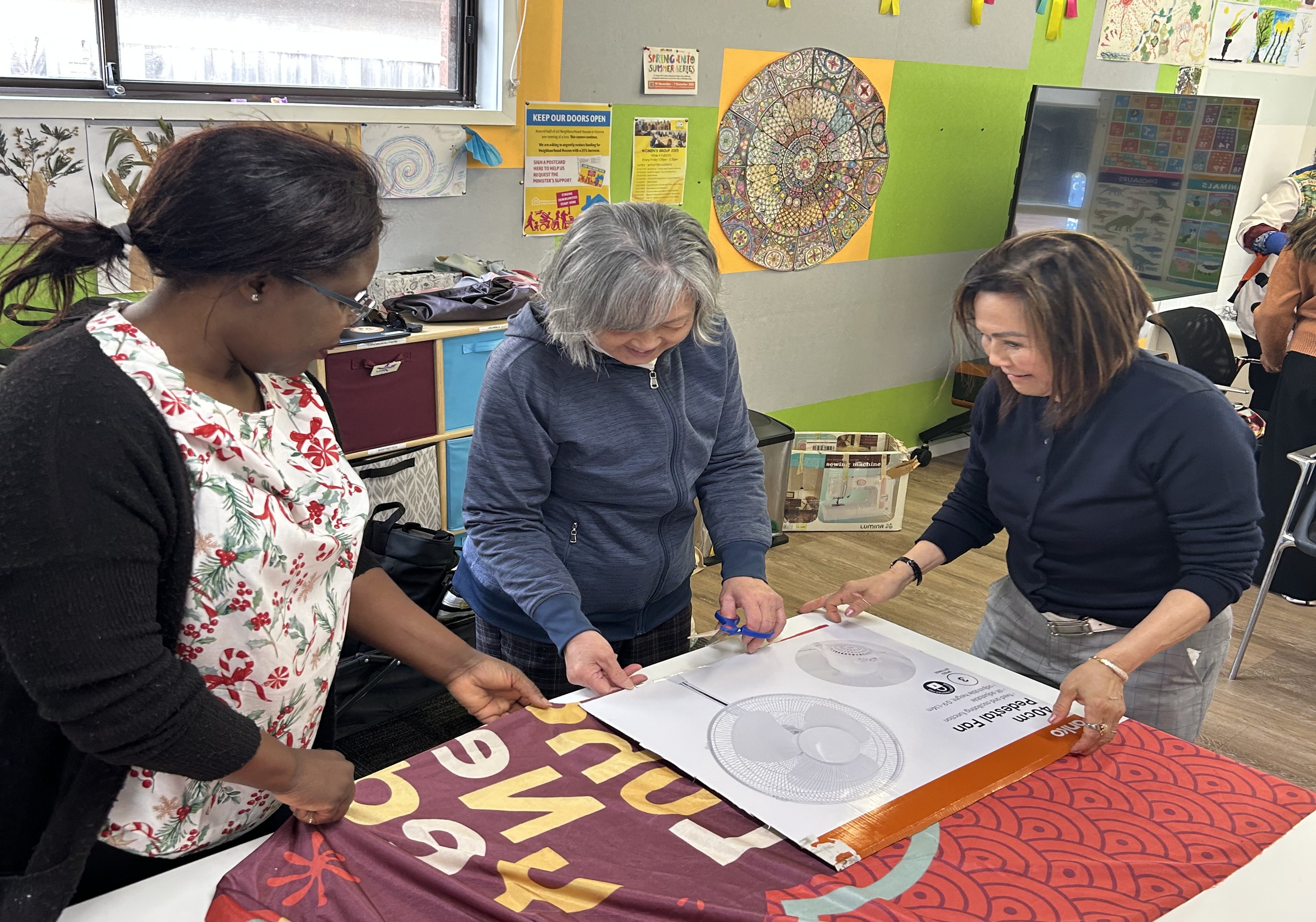 In July 2025, the Footscray African Women’s Sewing Group was commissioned to sew 130 conference bags for the Regenerating Communities: Community Development Conference hosted at Borderlands in Footscray, October 2025.